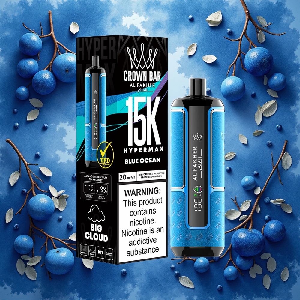 Al Fakher Crown Bar 15K Hypermax Disposable Vape Kit Blå Hav – 22ml & 600mAh