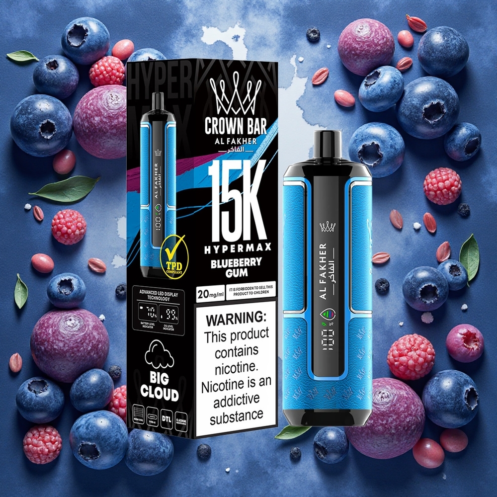 Al Fakher Crown Bar 15K Hypermax Disposable Vape Kit Blåbærtuggummi 22ml 15.000 puff