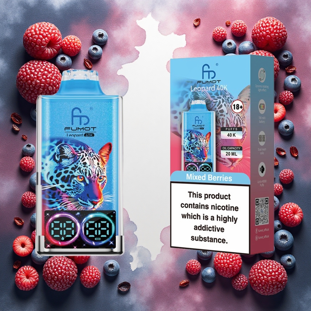 Fumot Leopard 40K Puffs Disposable Vape Blandede Bær, 5% Nikotin, 700mAh Batteri
