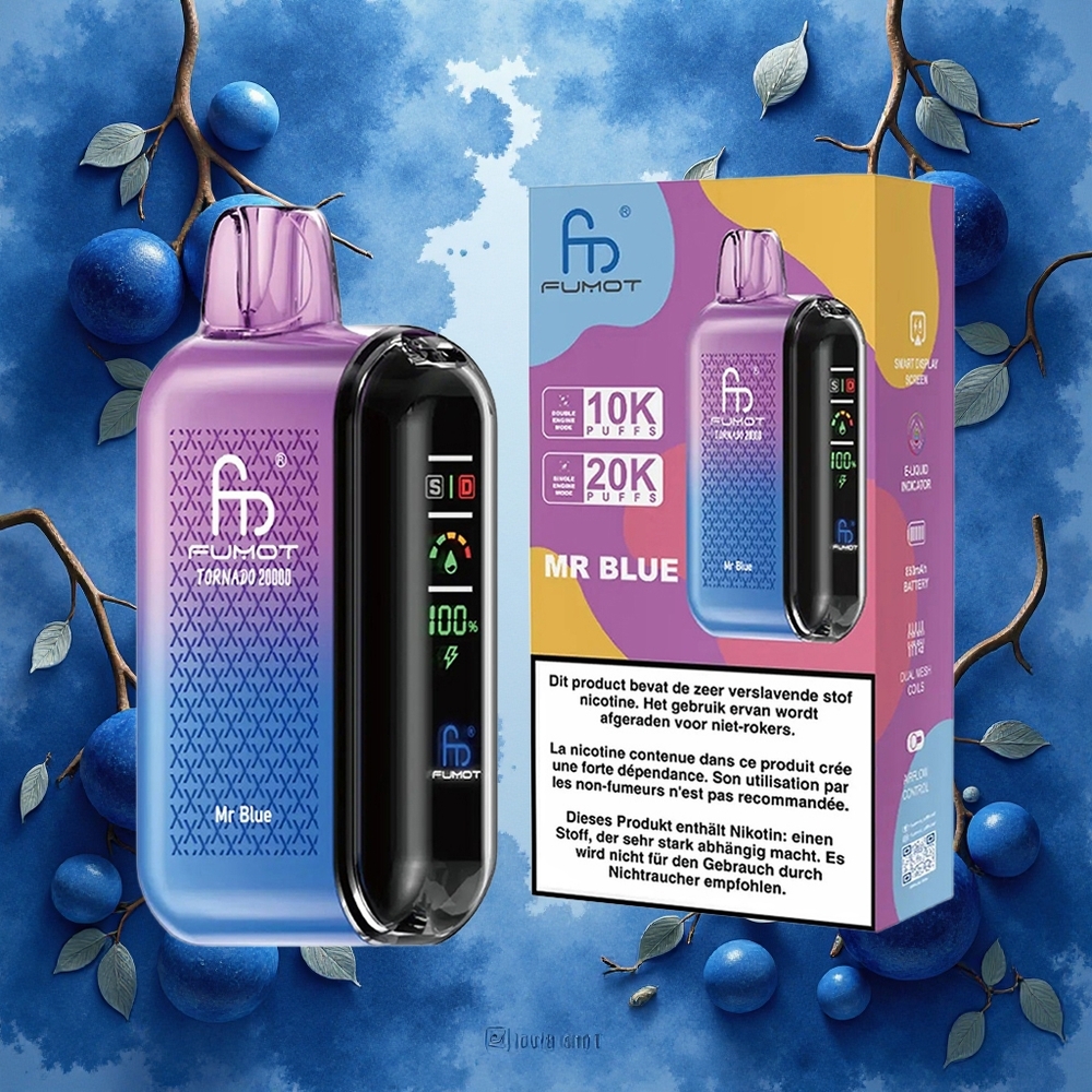 Fumot Tornado 20000 Puffs Engangsdamper Mr Blå med 20ml E-væske og 850mAh Batteri