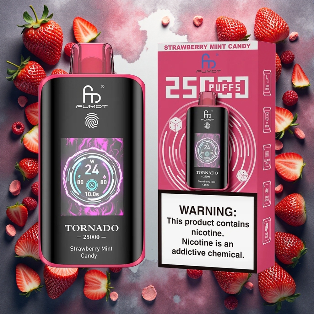 Fumot Tornado 25000 Puffs HD Skjerm 700mAh Oppladbar Batteri Jordbær Mynte Godteri