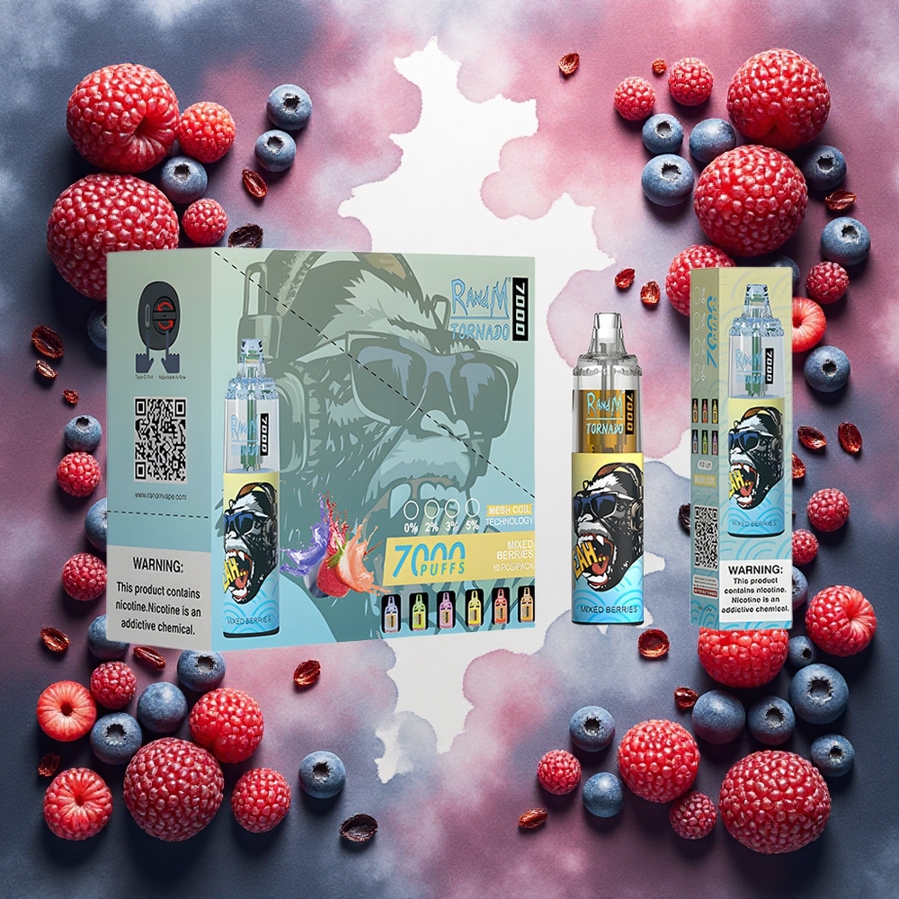 Fumot Tornado 7000 Disposable Vape Blandede Bær 14 ML E-liquid 850 MAH Battery
