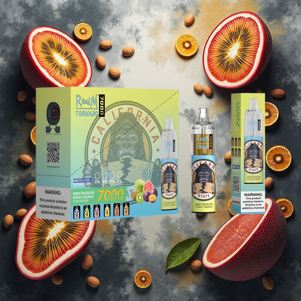 Fumot Tornado 7000 Engangsvape Kiwi Passionsfrukt Guava 14 ML 850 MAH