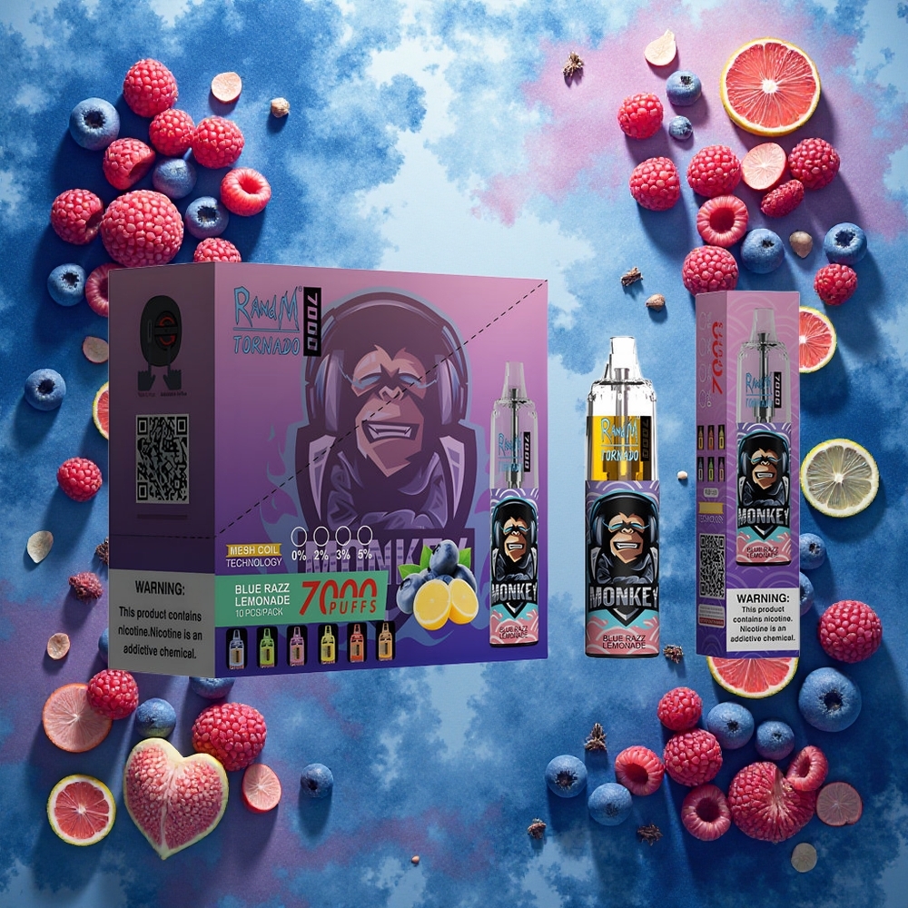 Fumot Tornado 7000 Puffs Engangsdamp Blå Bringebær Sitronade 14 ML E-væske