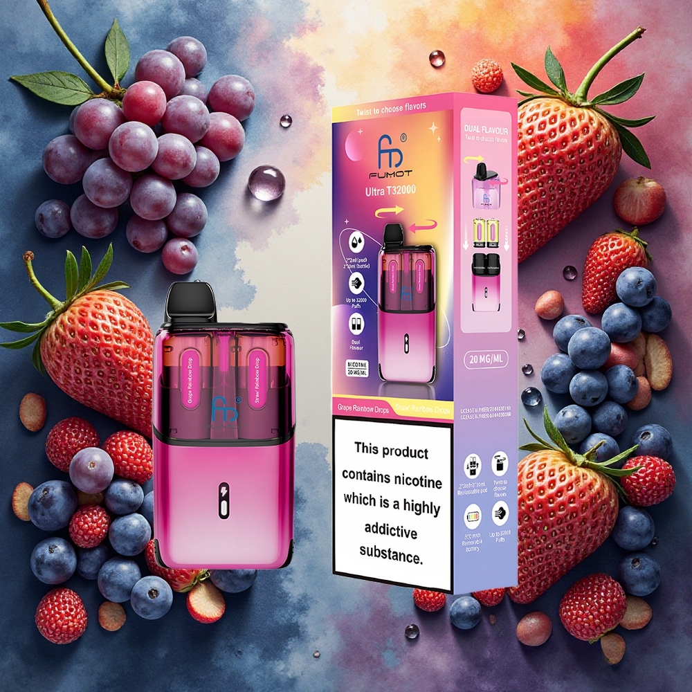 Fumot Ultra T32000 Engangsdamp med 32000 puffs og Drue Regndråper – Jordbær Regndråper