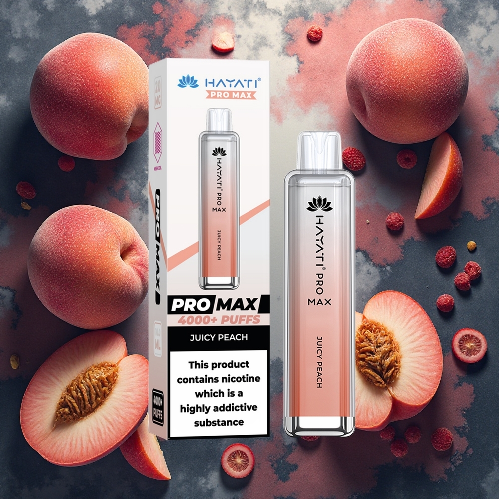 Hayati Pro Max 4000 Puffs Engangsdamp med Juicy Peach (Saftig Fersken) – 1400mAh batteri