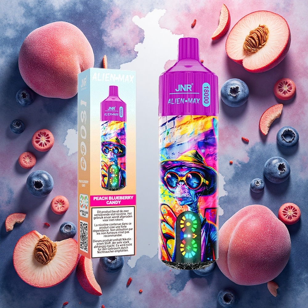JNR Alien Max 18000 Puffs Engangsdamper Fersken Blåbær Godteri med Smart LED Display & 28ml E-væske