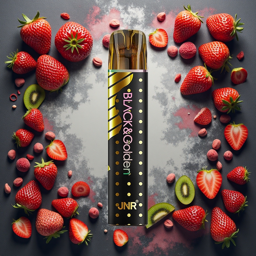 JNR Black&Golden 600+200 Puffs Engangsvaper Jordbær Kiwi 800 Puffs 550mAh