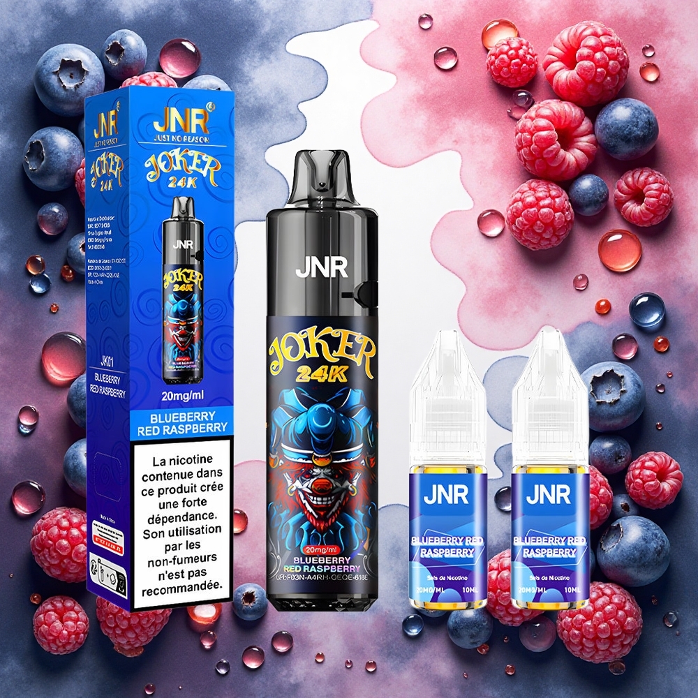 JNR Joker 24K Puffs Disposable Vape Blåbær Rød bringebær med 800mAh batteri og synlig e-væskenivå