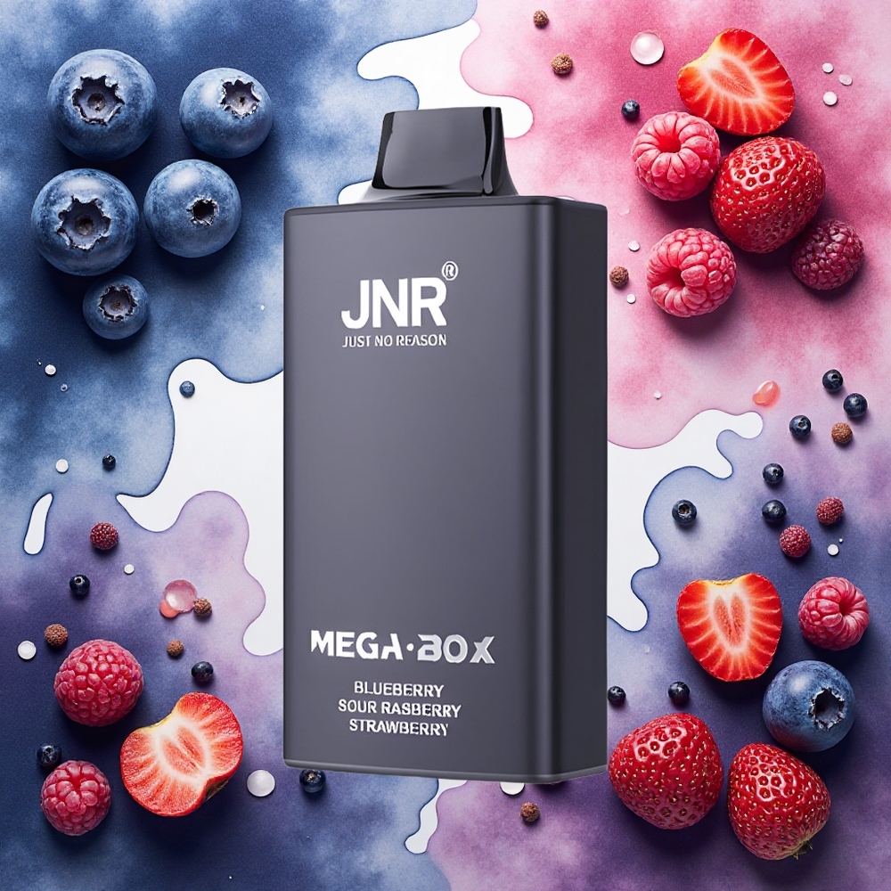 JNR Mega Box 25000 Puffs Disposable Vape Blåbær Sur Bringebær Jordbær – 850mAh Batteri & 30ml E-væske