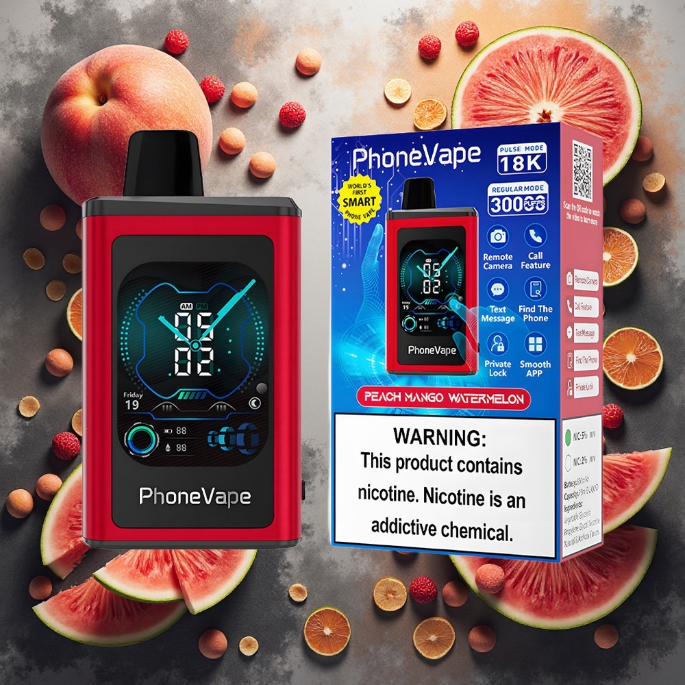 JNR PhoneVape 30000 puffs Disposable Vape Fersken Mango Vannmelon med 850mAh Type-C lading og justerbar luftstrøm