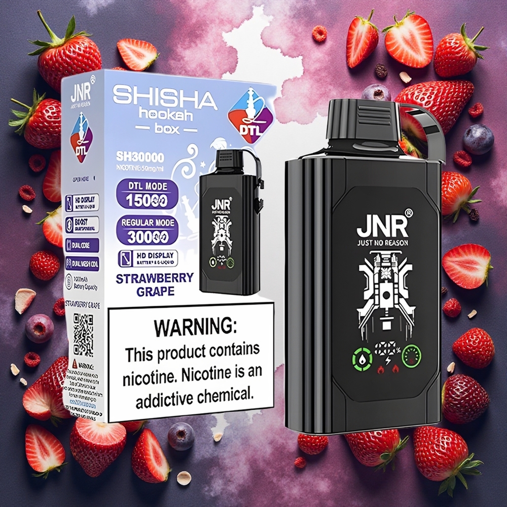 JNR Shisha Hookah Box 20500 Puffs Disposable Vape Jordbær Drue med 25ml e-væske og 1000mAh batteri