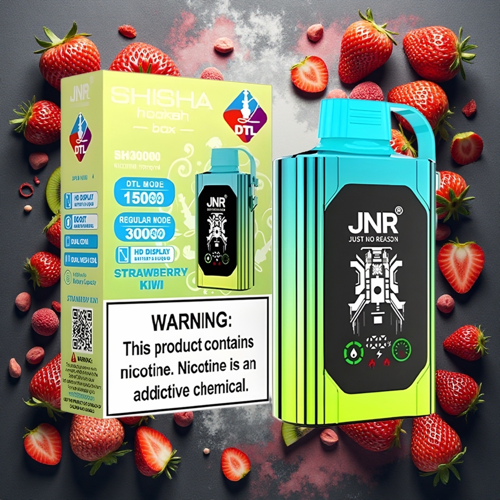 JNR Shisha Hookah Box 20500 Puffs Disposable Vape Jordbær Kiwi – 25ml & 1000mAh