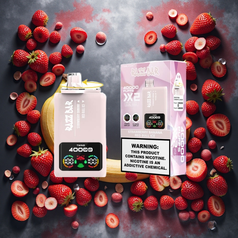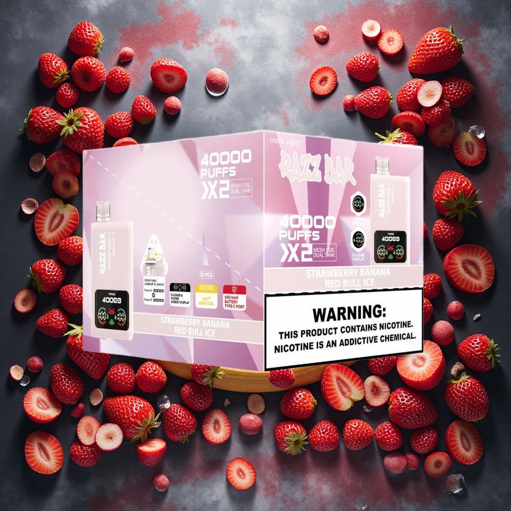 Razz Bar 40000 Puffs Disposable Vape Jordbær Banan_Red Bull Is med Power Screen Display