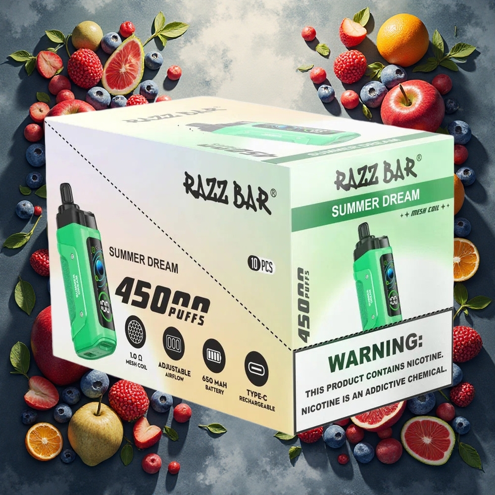 Razz Bar 45000 Puffs Disposable Vape Sommerdrøm 20 mg/ml Nikotin og 650 mAh Batteri
