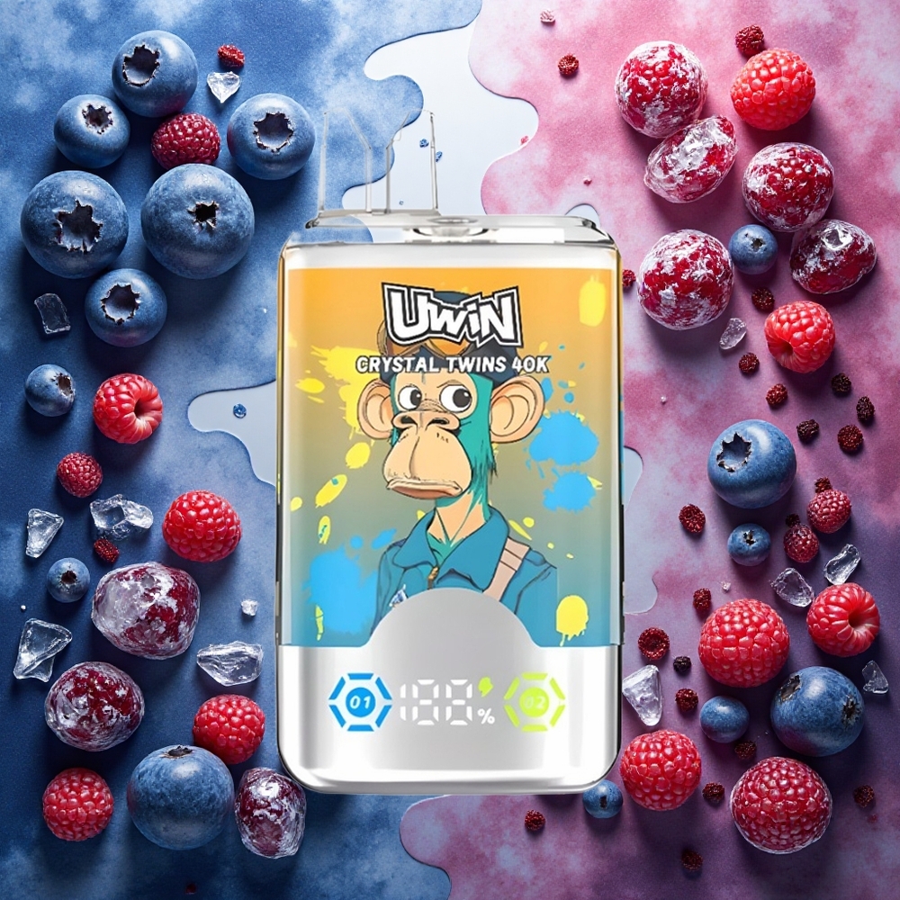 UWIN Crystal Twins 40000 Puffs Blåbær Bringebær Kirsebær Is 0,6 Ohm