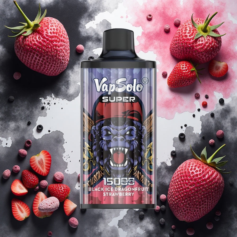 Vapsolo Super 15000 puffs Engangsvaper Svart Is-Dragefrukt Jordbær 40ml 50 mg/ml