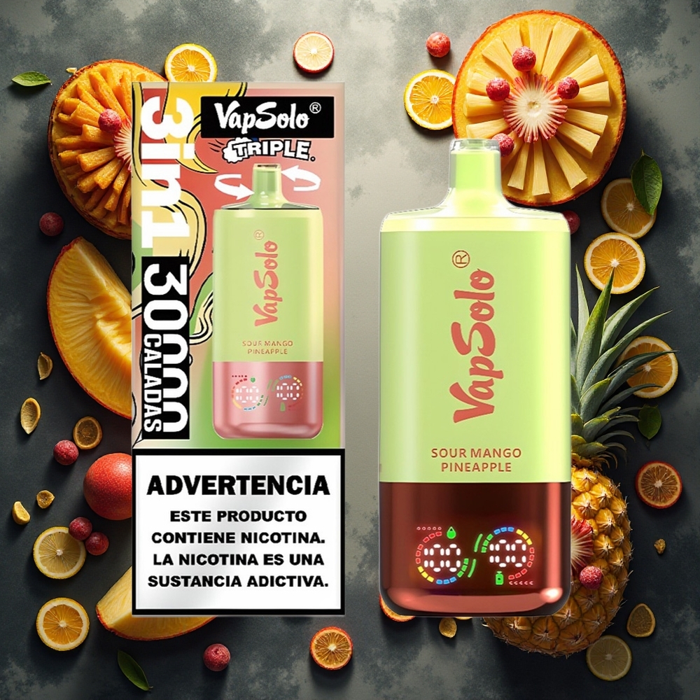 VapSolo Triple 30000 Puffs Engangsdamp Sur Mango Ananas 40ml